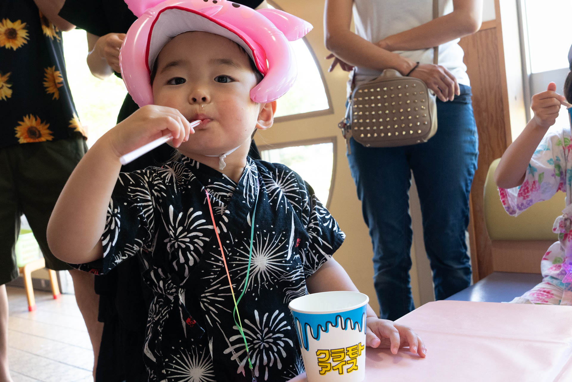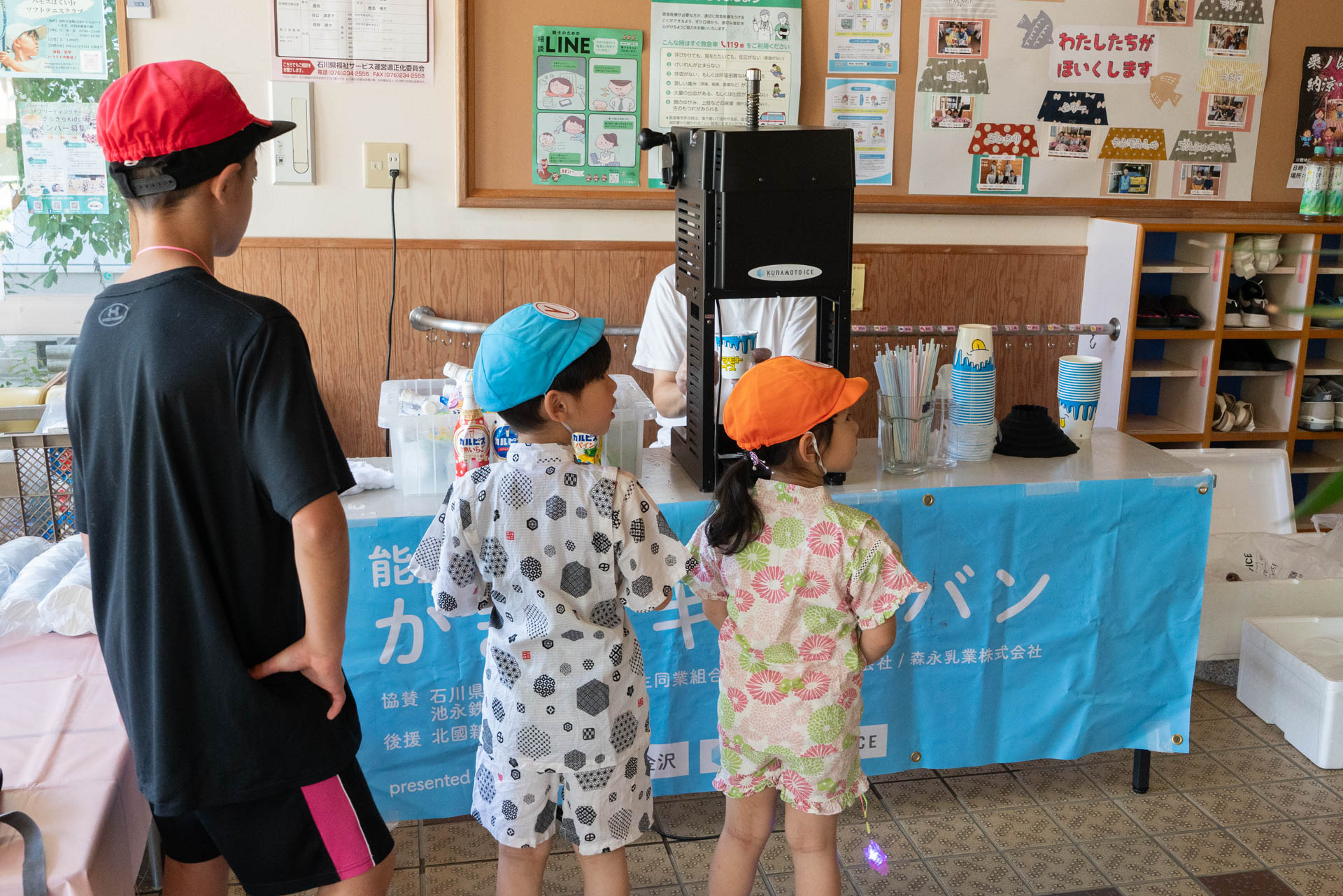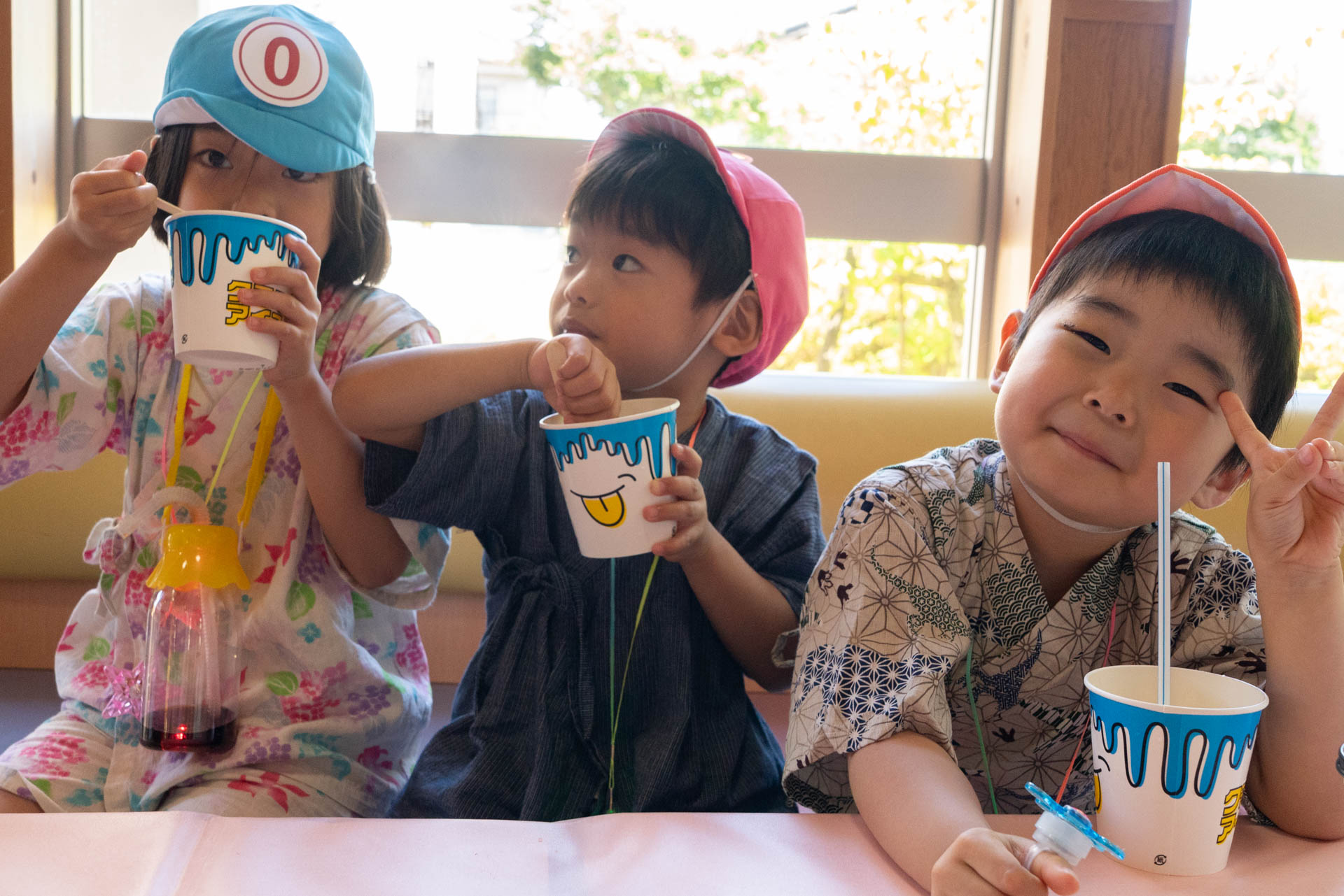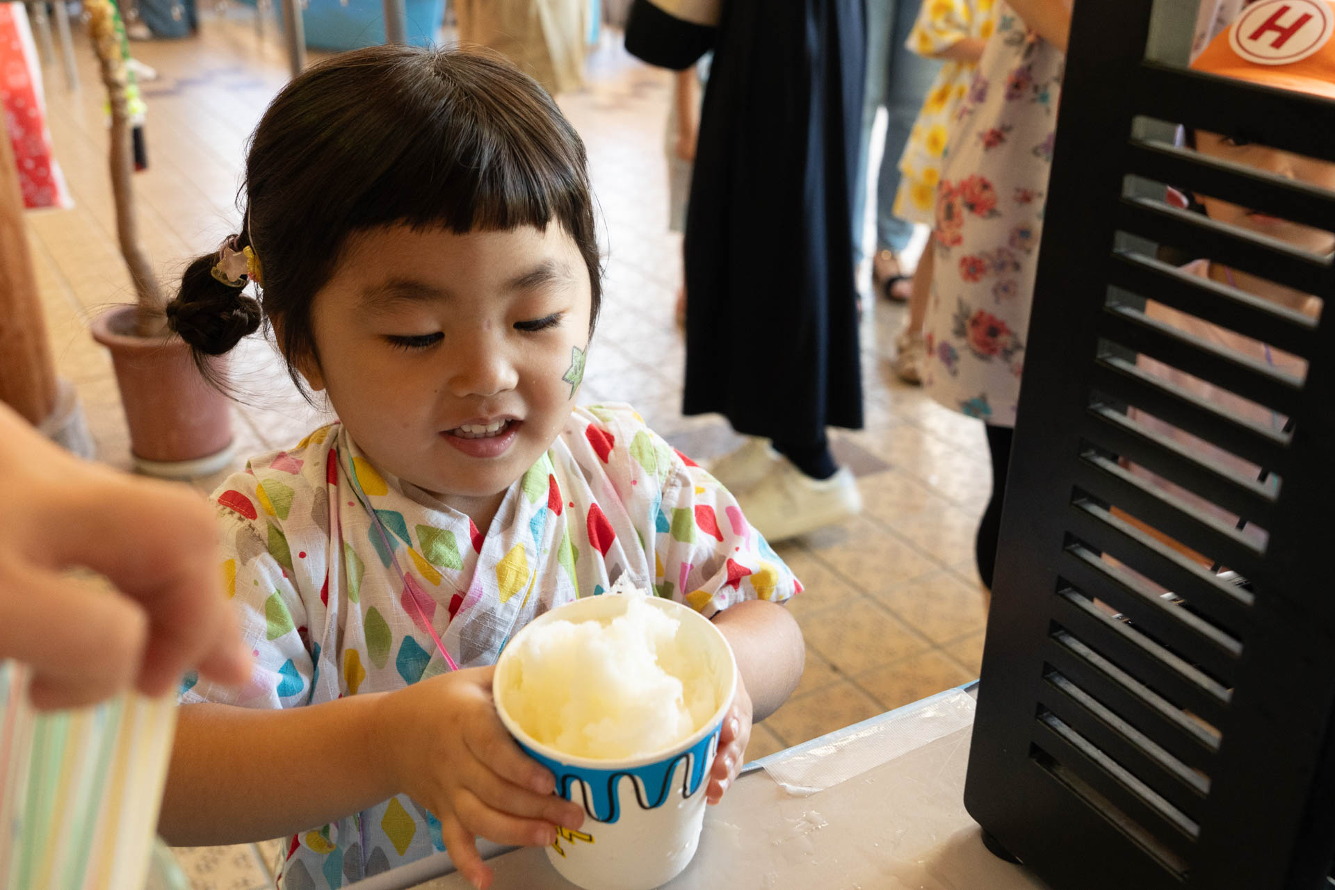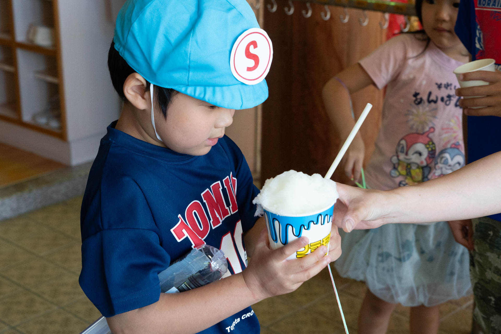 この子たちは3兄弟かな?今年のかき氷キャラバンは保育園、幼稚園が中心ですが、こういった夏祭りなどでは小学生や親御さんなどにも振る舞えるのが嬉しいです♪