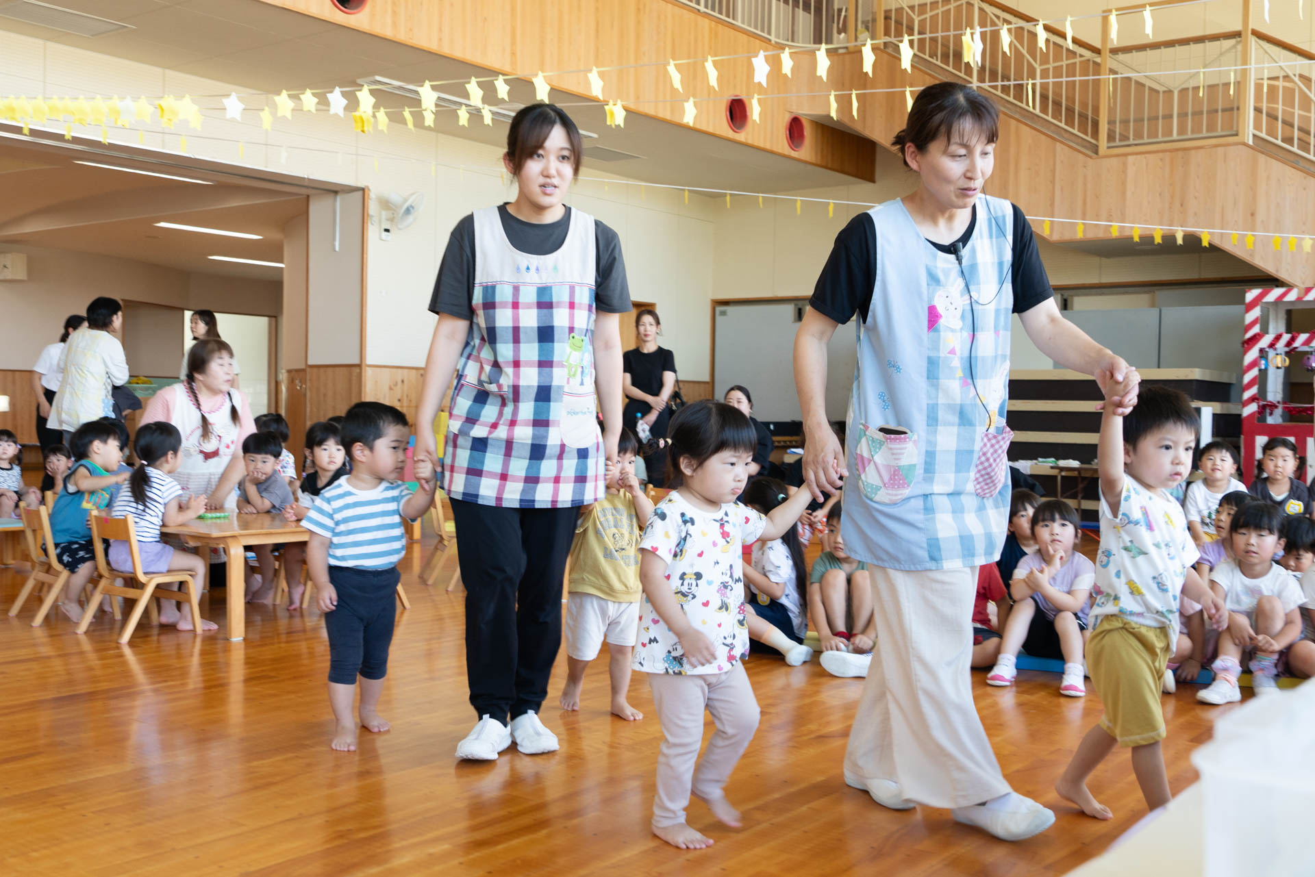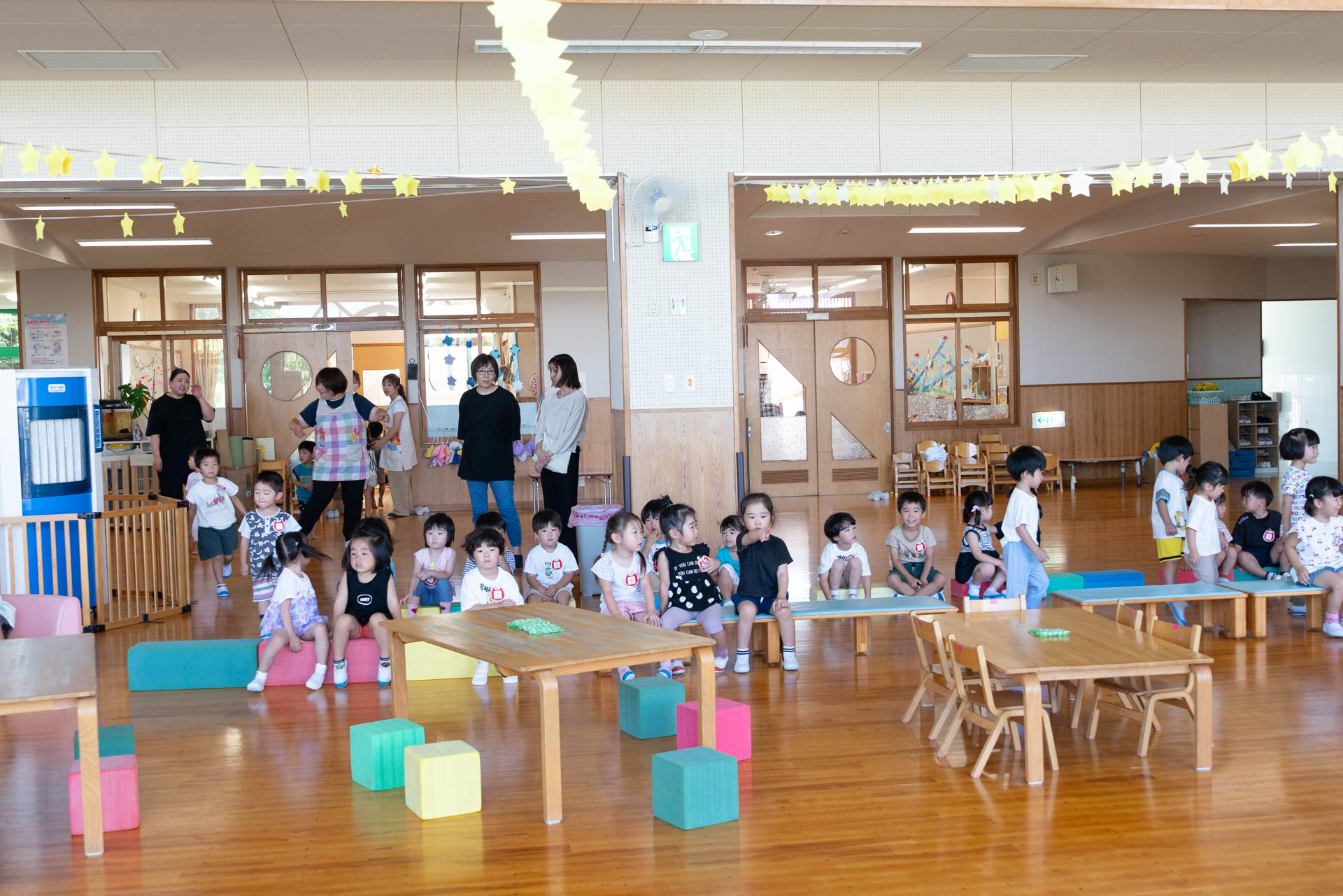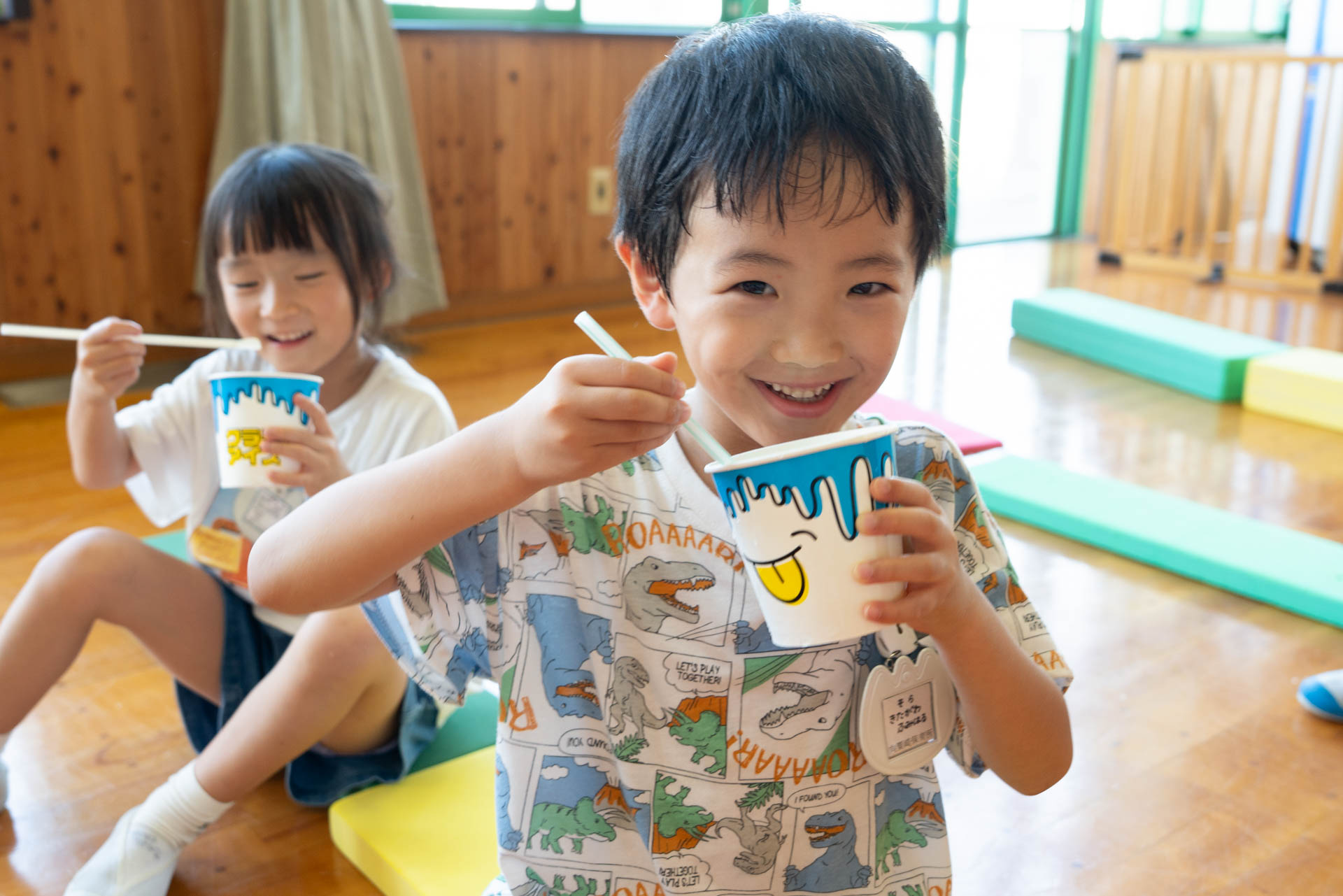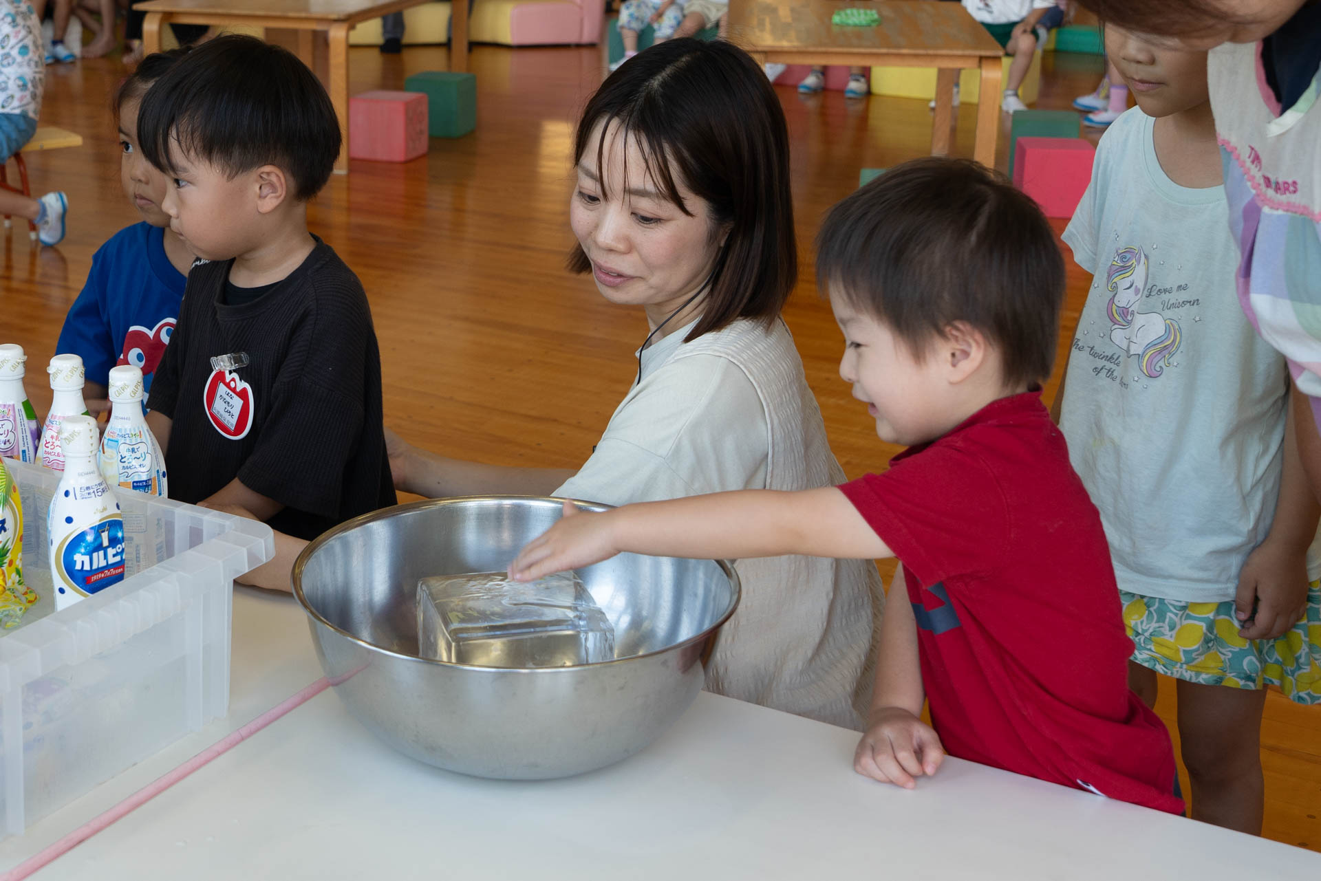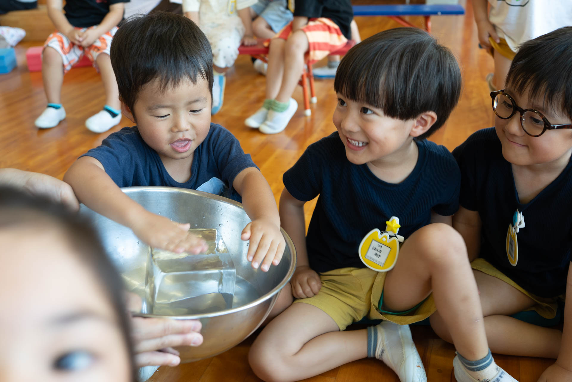 園に到着すると、すでに子どもたちがホールで勢揃いしていました。待ちきれなくて、嬉しそうにする子どもたち。「もう待てなーい!」「はやくかき氷たべたーい!」と無邪気な声が聞こえます。