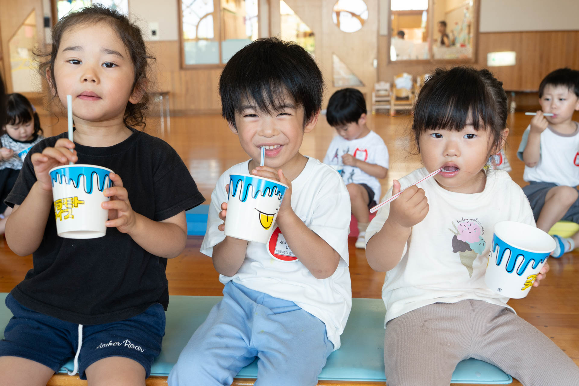 園によってはどのシロップにするか迷う子も多い中、こちらの園の子どもたちは初めから自分の好きな味がはっきりしている子が多かった印象です。